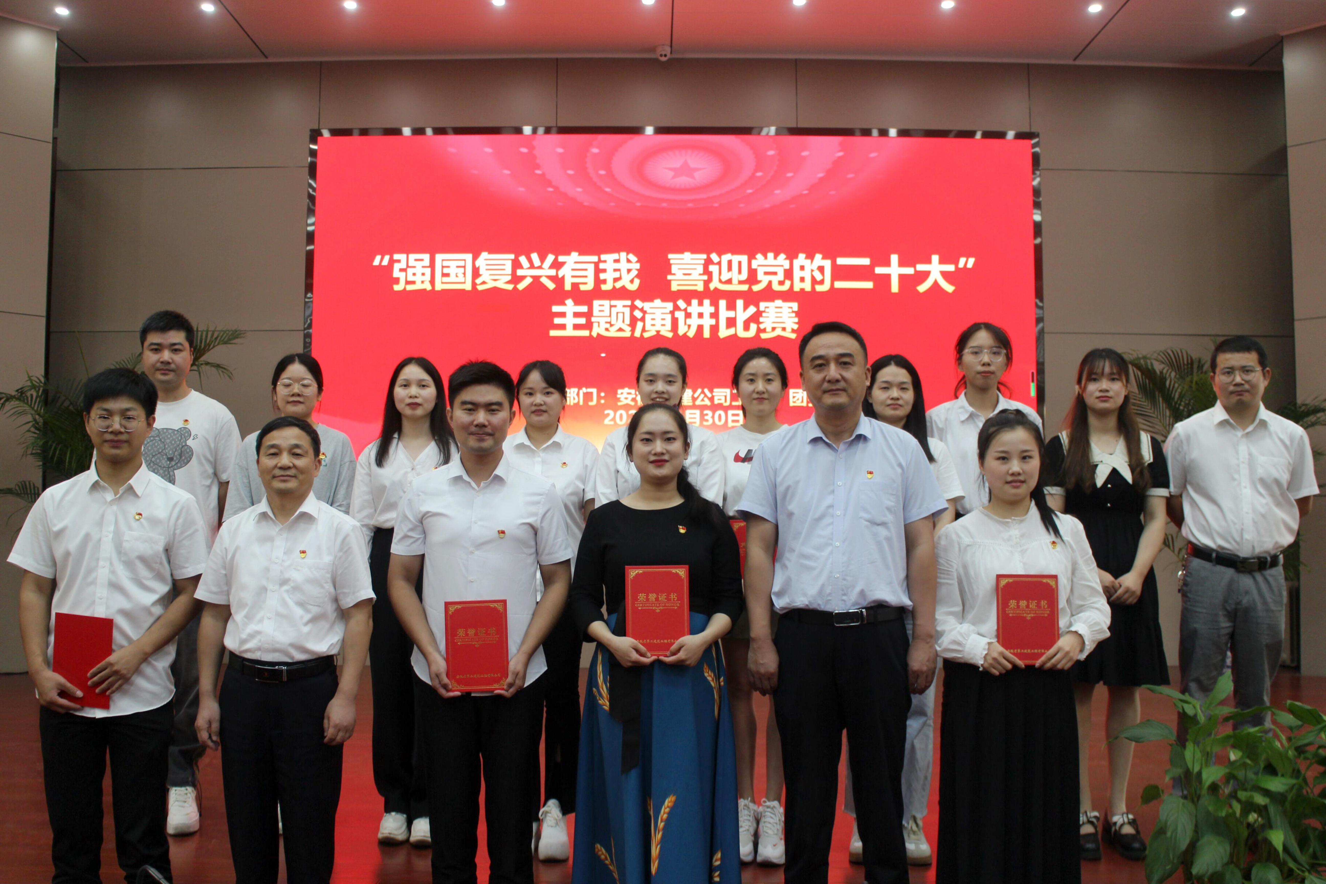 紅旗飄飄,歌聲嘹亮,金秋十月,又添新喜。為慶祝中華人民共和國成立73周年,喜迎黨的二十大勝利召開,9月30日下午,安徽二建公司工會、團委在新會議室舉辦“強國復興有我  喜迎黨的二十大”主題演講比賽。公司黨委副書記、總經理李建成,黨委副書記、工會主席王軍,黨委委員、紀委書記沈壯,黨群部門人員,所屬單位黨支部、工會、團支部負責人,部分職工代表現場觀看比賽。