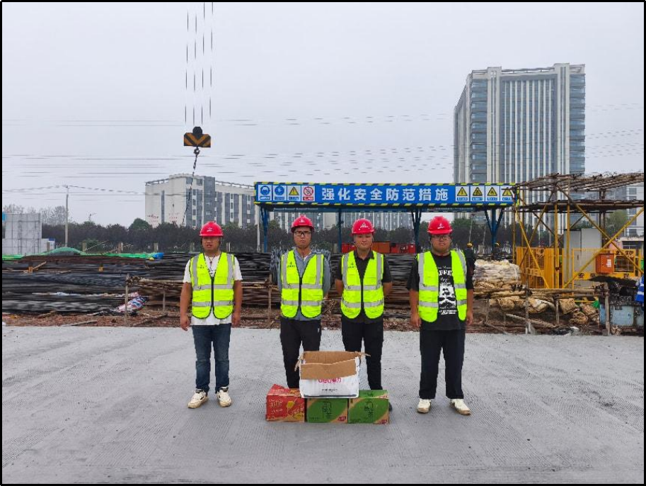 期間,項目部在嚴格落實方案到位、措施到位、監管到位,確保節日安全生產工作的同時。為讓一線工友感受到企業的溫暖,10月6日中秋佳節當天,項目部領導班子成員深入施工一線、各作業點位,看望慰問節日期間奮戰一線的項目管理人員、農民工,送去精心準備的月餅,送上節日溫暖和祝福,對他們的堅守及付出表達了最誠摯的感謝。