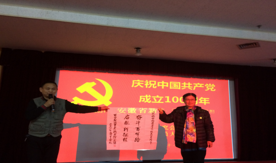 最后,安徽二建四分公司綜合辦主任鄭婭作為代表發(fā)言:四分公司自2020年10月與安徽省新四軍歷史研究會淮海委員會簽訂共建協(xié)議以來,開展過多次共建活動,深入一線項(xiàng)目進(jìn)行黨課宣講、播放黨史教育片,舉辦“結(jié)對共建,溫暖前行”迎新晚會,以及寫春聯(lián)送祝福新春活動,傳承了紅色基因、弘揚(yáng)了紅色文化。值此百年華誕之際,四分公司與安徽省新四軍歷史研究會淮海委員會將進(jìn)一步加強(qiáng)合作交流,共同推動黨組織建設(shè),緊緊圍繞愛黨愛國愛社會主義的主題,積極探索結(jié)對發(fā)展的新路子,豐富組織活動新形式,不斷拓寬合作新領(lǐng)域,力求結(jié)對共建盡快結(jié)出豐碩成果。