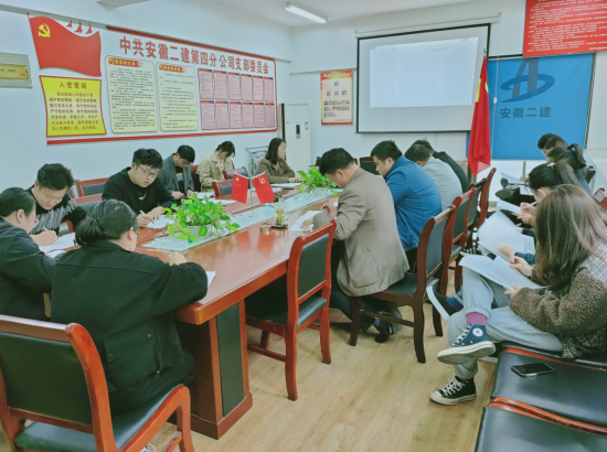 三分公司黨支部開展黨史學習教育活動,分公司機關全體人員參加,活動由支部書記陳習武主持。首先,陳習武帶領大家學習了二建黨發【2021】13號文《安徽二建公司黨委關于開展黨史學習教育的工作方案》,并就分公司黨支部的黨史學習教育活動做了詳細安排部署,要求全體黨員干部把思想和行動統一到集團、公司黨委的決策部署上來,高標準、高質量完成黨史學習教育各項任務,努力做到學史明理、學史增信、學史崇德、學史力行,以優異成績迎接建黨100周年。隨后,陳習武帶領大家上了一堂生動的黨史課。“從上海石庫門到嘉興南湖,一艘小小紅船承載著人民的重托、民族的希望,越過急流險灘,穿過驚濤駭浪,成為領航中國行穩致遠的巍巍巨輪。”。通過視頻和講解相結合,為大家敘述了從中國共產黨成立到建立新中國,28年間,黨召開了一次次重要會議。這些會議作出的決策,指引了中國革命的方向,推動了歷史進程,具有里程碑意義。大家紛紛表示,將從黨史中汲取智慧和力量,堅定信仰信念,進一步提高黨性修養,不忘初心,以實際行動發揮好黨員干部的模范帶頭作用,積極投入到干事創業中去,為分公司的發展添磚加瓦。