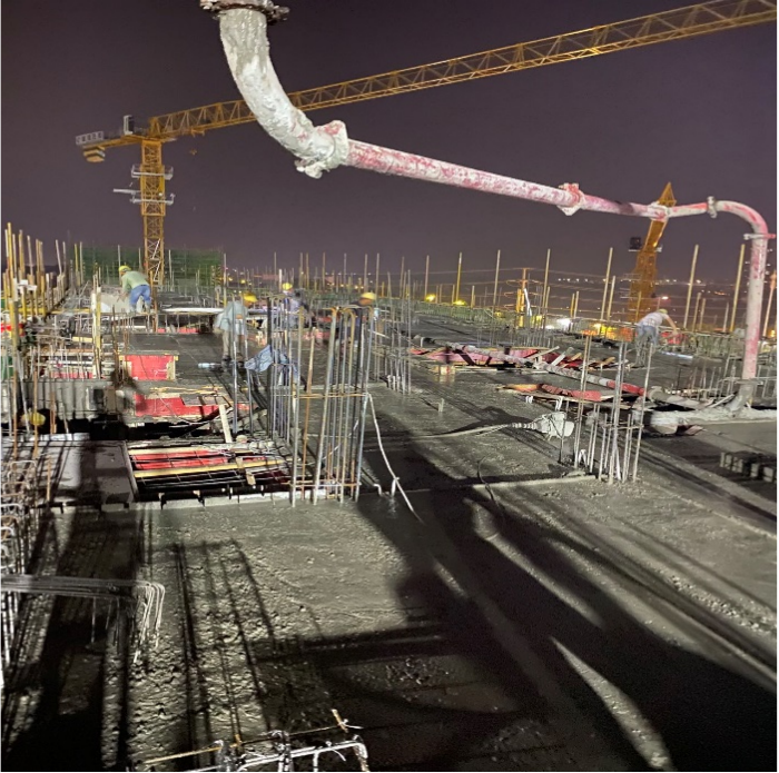 持續的“加長版”三伏天給現場的管理帶來了極大的考驗。項目部秉持以人為本的管理理念,合理調整室外作業時間,并采購藥品、礦泉水,熬煮綠豆湯,為高溫時節仍在為競賽奮斗的一線工人送去一絲清涼;項目部及時編制倒排計劃,并根據總進度計劃分解到季度、到月、到周。每周下發施工任務書,在召開的周生產例會上簽訂責任狀,獎罰分明,起到一定激勵作用。項目生產部門根據現場施工實際情況,三天調整一次進度計劃,確保計劃具有指導性,可行性。